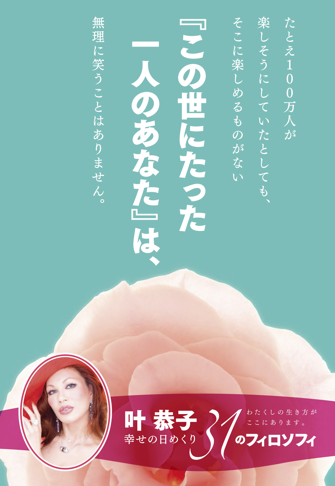 叶恭子幸せの日めくり 31のフィロソフィ たとえ100万人が楽しそうにしていたとしても そこに楽しめるものがない この世にたった一人のあなた は 無理に笑うことはありません きゃにめ